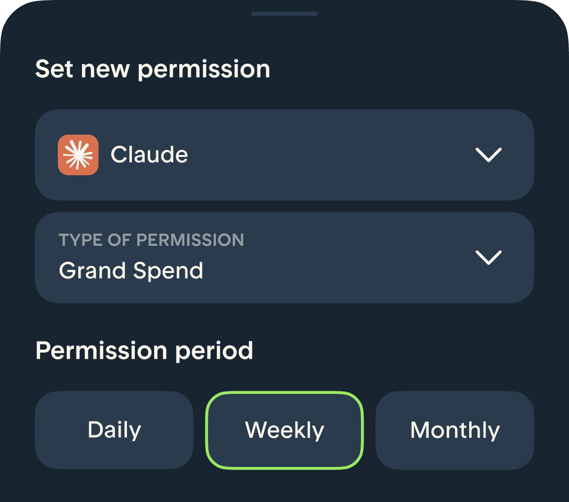 Human-in-the-loop. Approve every transaction manually.